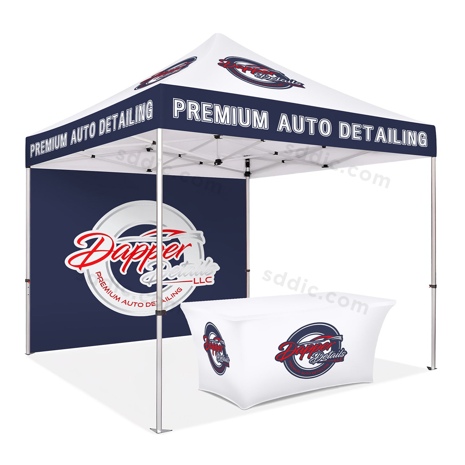 Custom Canopy Tent with Back Wall & Table Cover Package