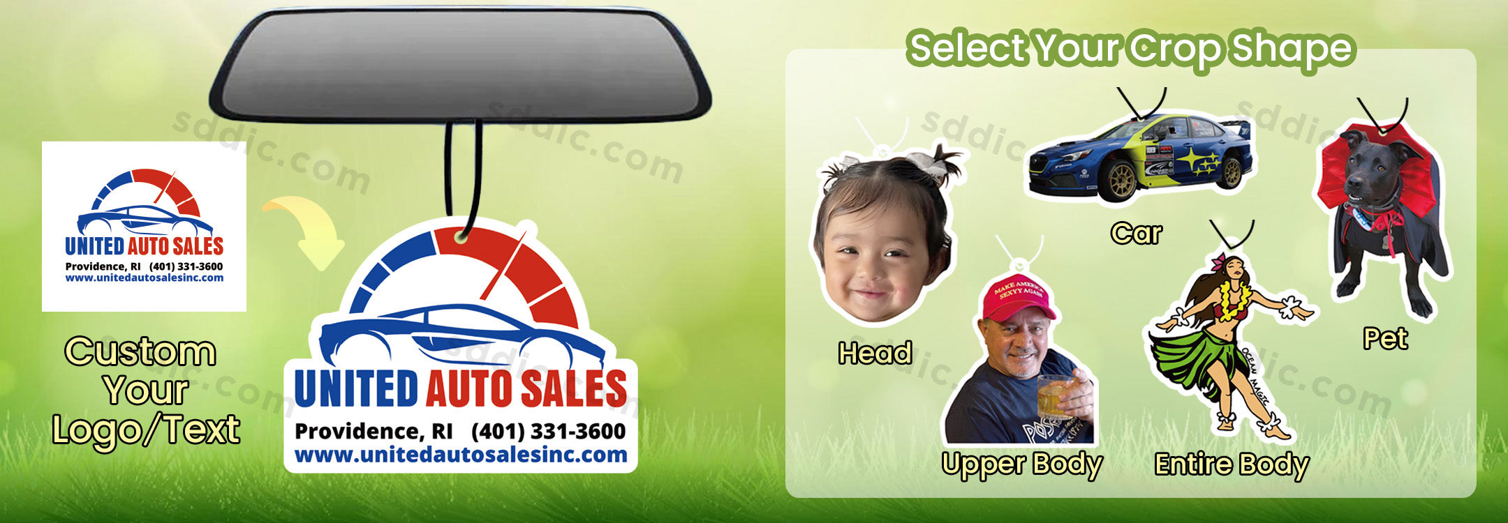 Create a personalized air freshener tailored to your needs. Choose from custom crop shape including head, face, upper body, whole body, or your logo to showcase your brand or favorite image. Ideal for pet lovers, wedding favors, event promotions, car washes or giveaways, these air fresheners combine unique design with long lasting fragrance, enhancing any space with a professional touch. Perfect for businesses seeking branded promotional items or individuals wanting a distinctive scent accessory.