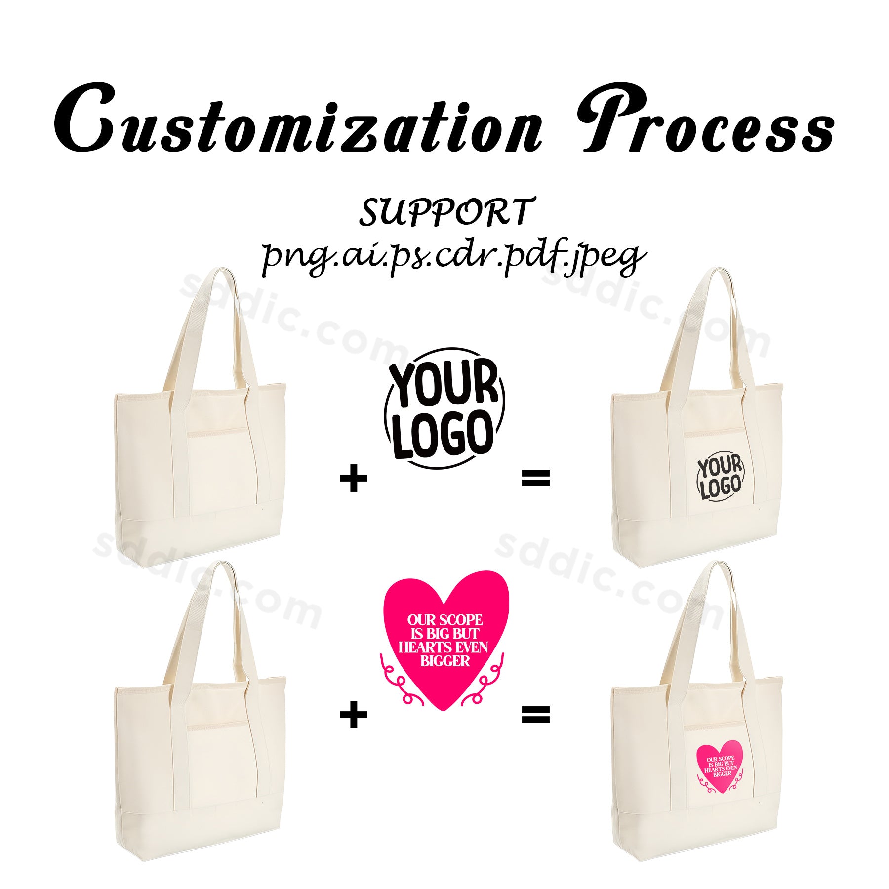Custom Printed Logo Canvas Bag Pocket Shopping Tote Bag for Promotion