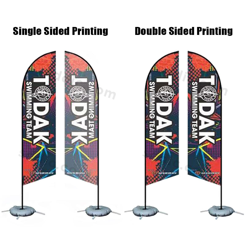 Our custom feather flags are made of 110g knitted polyester fabric for unmatched durability and vibrant appeal. This fabric is durable and has waterproof and UV resistant properties, protecting it from sun damage and harsh weather conditions. Its strong wind resistance and high elasticity prevent tearing and deformation, even in challenging environments, ensuring it remains in pristine condition over time.