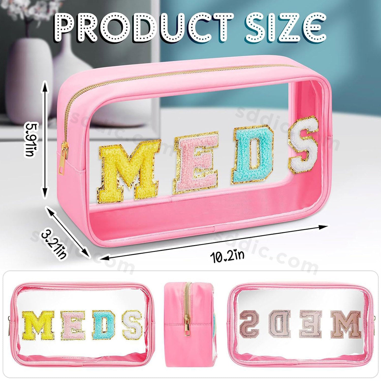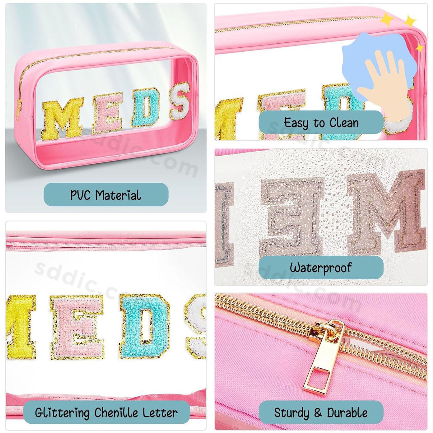 MEDS Chenille Letter Clear Makeup Bags Portable Travel Medicine Pouch